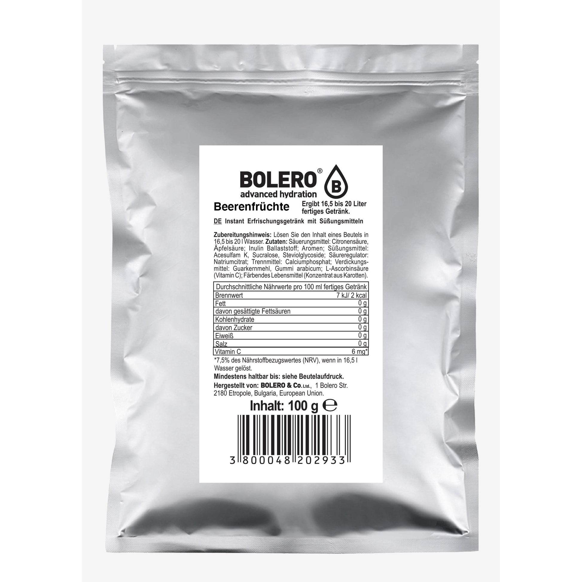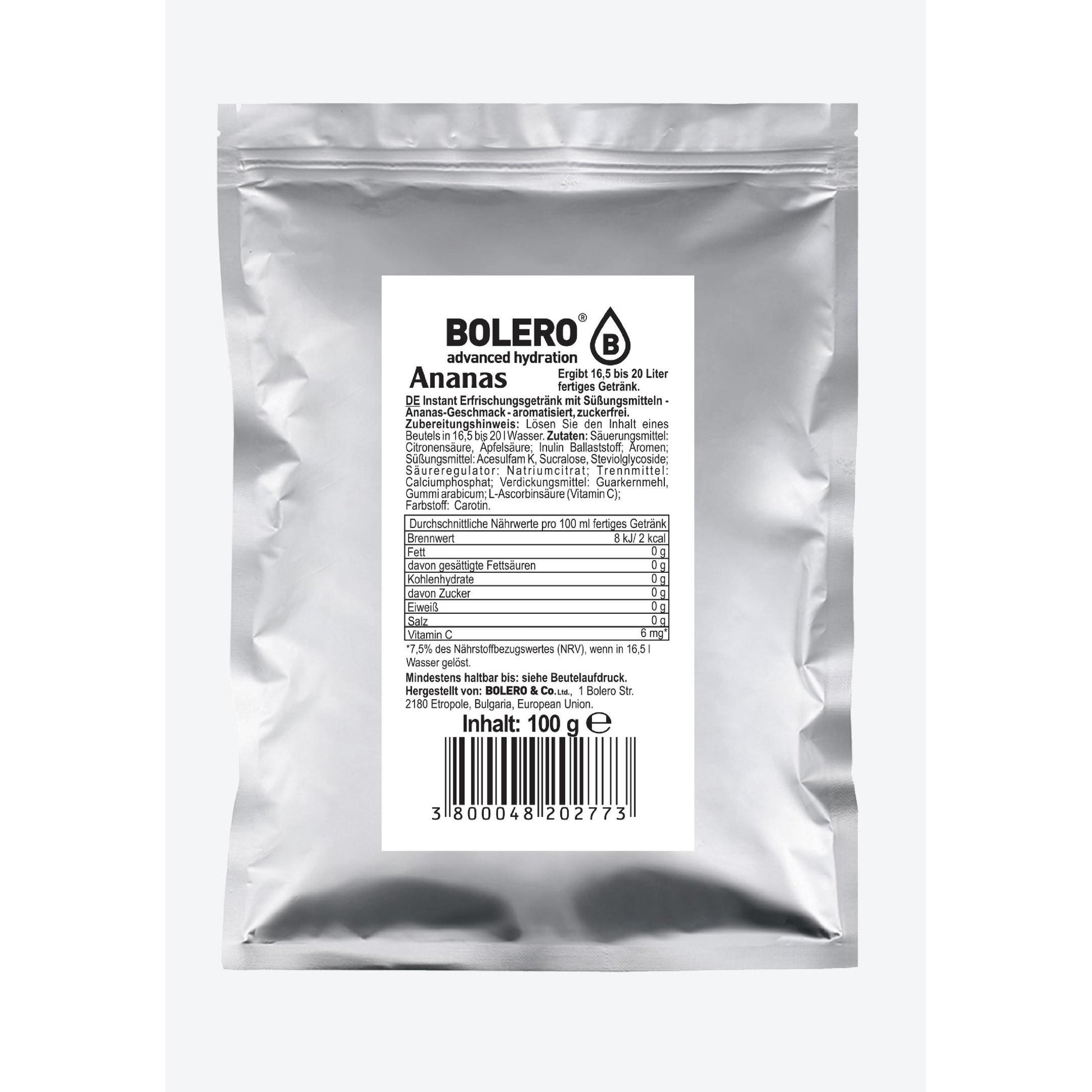 - Bolero Drinks wird im Beutel geliefert. Dieser ist luftdicht verschweißt und gewährleistet so eine lange Haltbarkeit und einen frischen Geschmack.