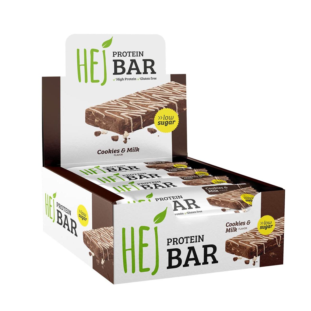 Hej Protein Bar gibt es in 7 leckeren Geschmacksrichtungen: Apple & Cinnamon, Brownie, Chocolate & Almonds, Chocolate & Peanuts, Chocolate Chip, Cookies & Milk, Strawberry Yoghurt