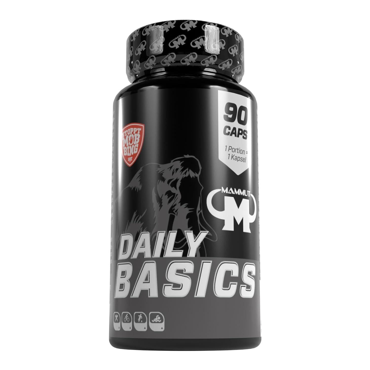 Die Mammut Daily Basics vereinen einen optimal konzipierten Komplex aus Vitaminen und Mineralstoffen. Viele Nährstoffe kann der Körper nicht selbst herstellen, weshalb sie ihm über die Nahrung oder in Form von Supplementen zur Verfügung gestellt werden sollten, um eine optimale Versorgung zu gewährleisten. Wir empfehlen täglich eine Kapsel der Mammut Daily Basics, idealerweise zu einer Mahlzeit, einzunehmen. Erhältlich sind die Mammut Daily Basics in einer Dose mit je 90 Kapseln.
