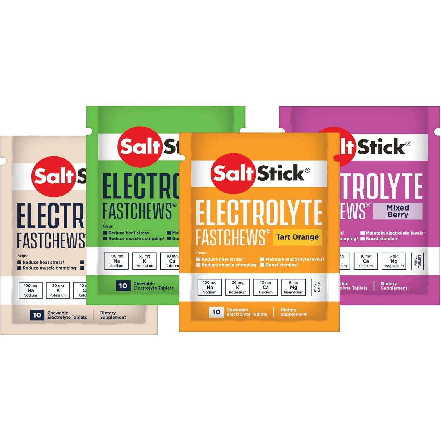 Salt Stick - Salz und Mineralien Kautabletten 4 x 10 Stück Mix (Orange,Beere,Kokos,Lemon)