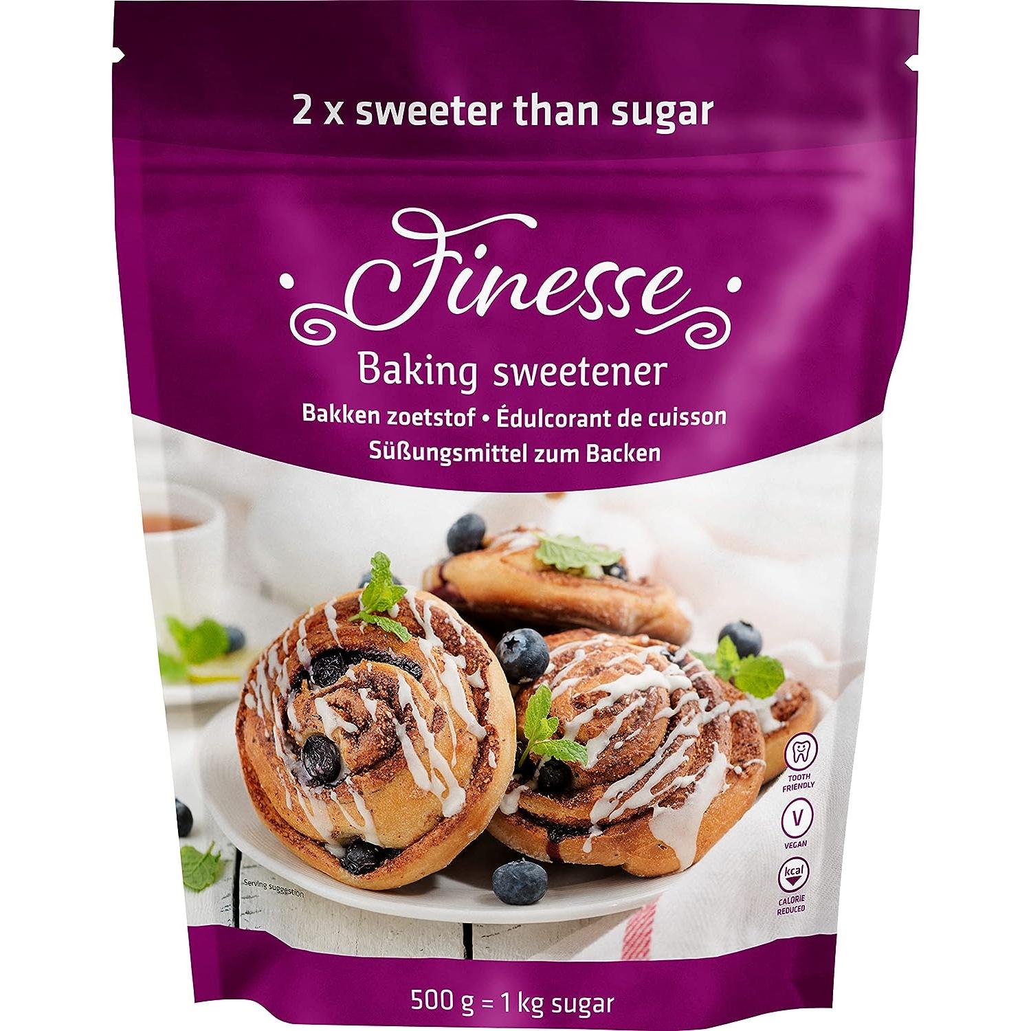 Ein kleiner Tipp: Wenn Sie Finesse in einem Rezept verwenden, das ursprünglich Zucker oder einen anderen Süßstoff im gleichen Verhältnis wie Zucker enthält, empfehlen wir, die Backzeit zu verkürzen. Finesse trägt zur Textur und zum Geschmack des Endprodukts bei, sodass eine kürzere Backzeit oft ausreicht.